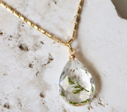 Dried Evergreen Necklace, Gold plated/acrylic by Mesa Blue (Dallas)