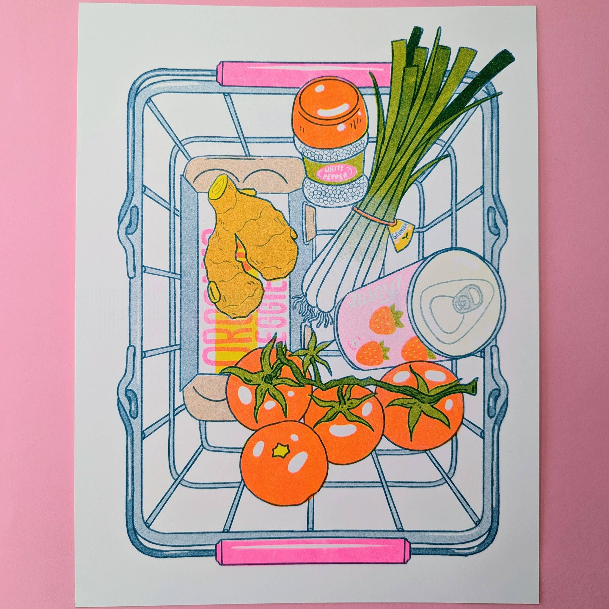 A warm and homey illustration inspired by one of the most beloved Chinese comfort dishes: tomato egg. This print captures the cozy ingredients waiting to be transformed into a nostalgic meal, with the recipe printed on the back as a little extra love. Printed in three vibrant riso inks (teal, pink, and yellow), each piece carries the soft textures and tiny imperfections that make risograph prints so charming. A perfect kitchen companion, art gift, or personal touch for your space.