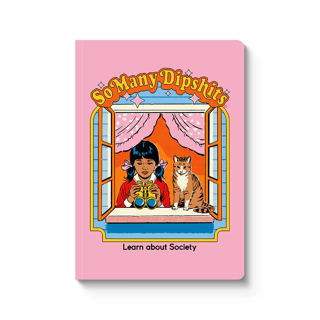 Steven Rhodes brings his signature retro-inspired humor to this sturdy A5 paperback notebook. Featuring a cheeky cover design with a girl, her cat, and the bold declaration So Many Dipshits, it’s the perfect place to vent, doodle, or jot down all of life’s absurdities.