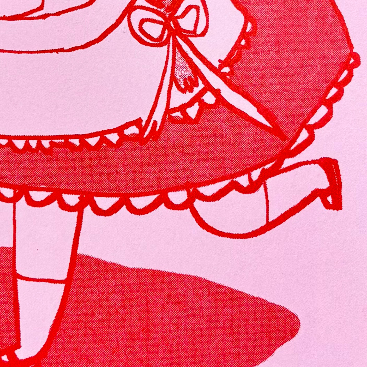 Printed using traditional risograph techniques, each print features natural ink variation and gentle, quiet imperfections that make every piece feel personal and one-of-a-kind. It’s the kind of small print that adds warmth, character, and a little sweetness wherever it’s displayed.