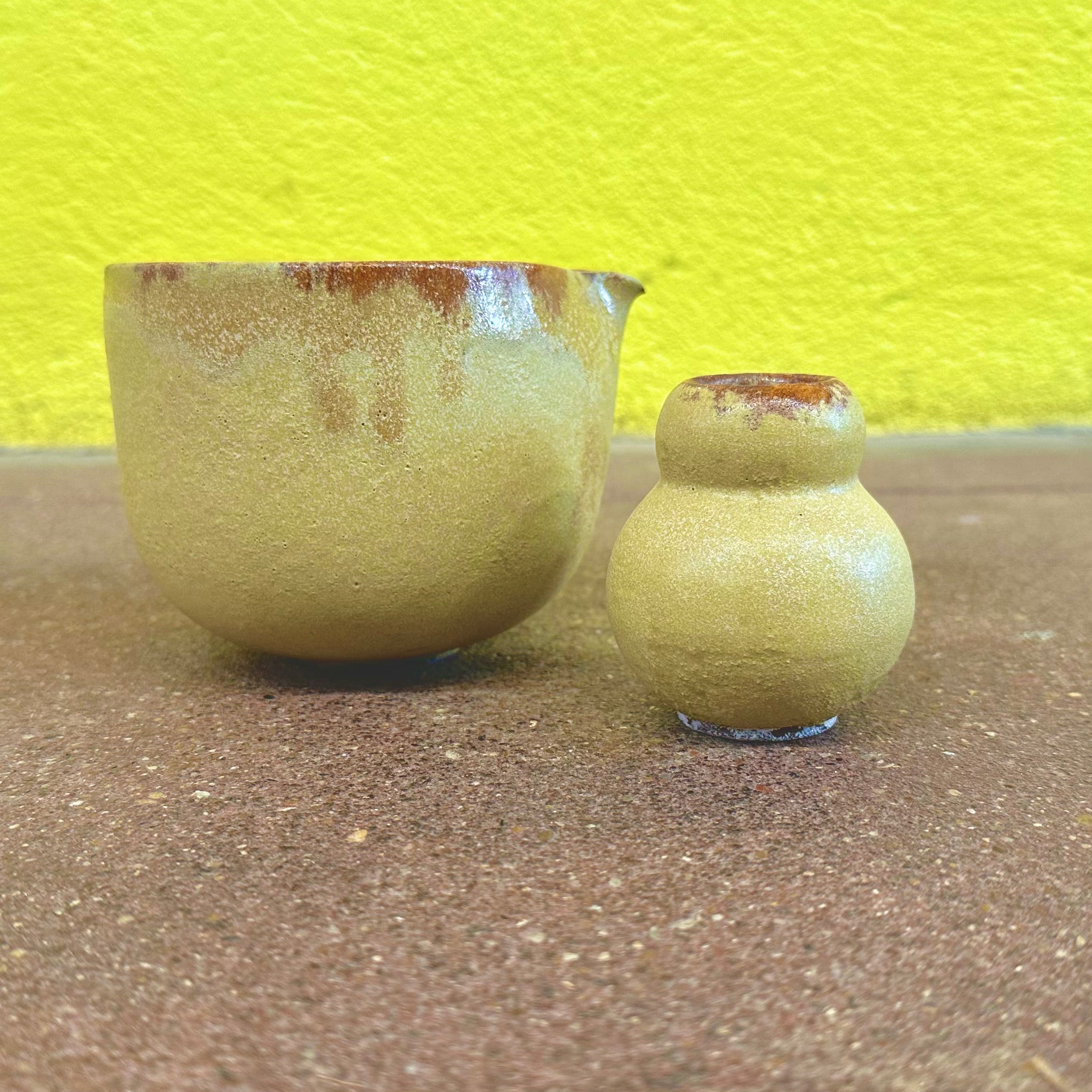 This yellow Soft Stone spouted matcha bowl and whisk stand set from Neko.Co.Neko. brings a little warmth to your tea corner. Each piece is made by hand in San Francisco by Linnan Ye, with layers of slip and glaze that echo the texture and irregular color of real stone. The soft yellow tones catch light beautifully, and because every bowl and stand is individually crafted, you’ll notice small, intentional differences from set to set—subtle shifts in shade, little marks, and organic shapes that make yours feel truly one-of-a-kind. Use the spouted bowl to whisk and pour matcha or sauces, and rest your whisk on the matching stand between uses.