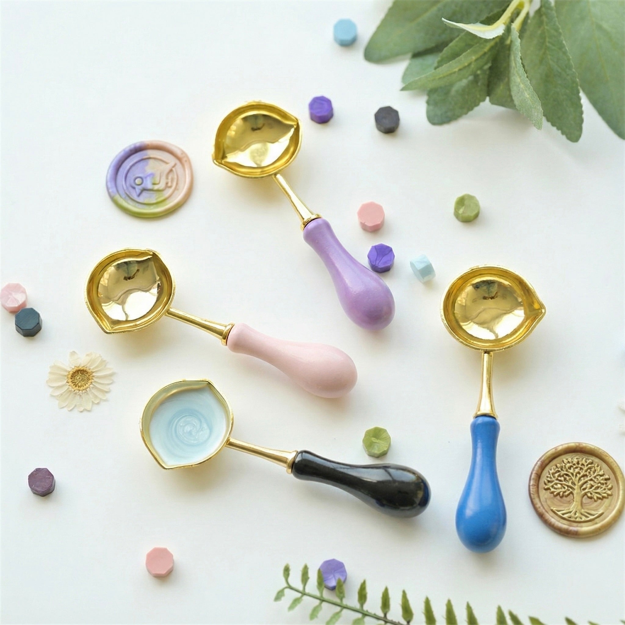 Each spoon features a smooth, rounded bowl that comfortably holds one wax pellet or bead at a time, making it easy to melt evenly and pour cleanly without rushing. The ergonomic wooden handle stays cool in hand and provides a balanced grip, helping you slow down and enjoy the process as much as the finished seal.