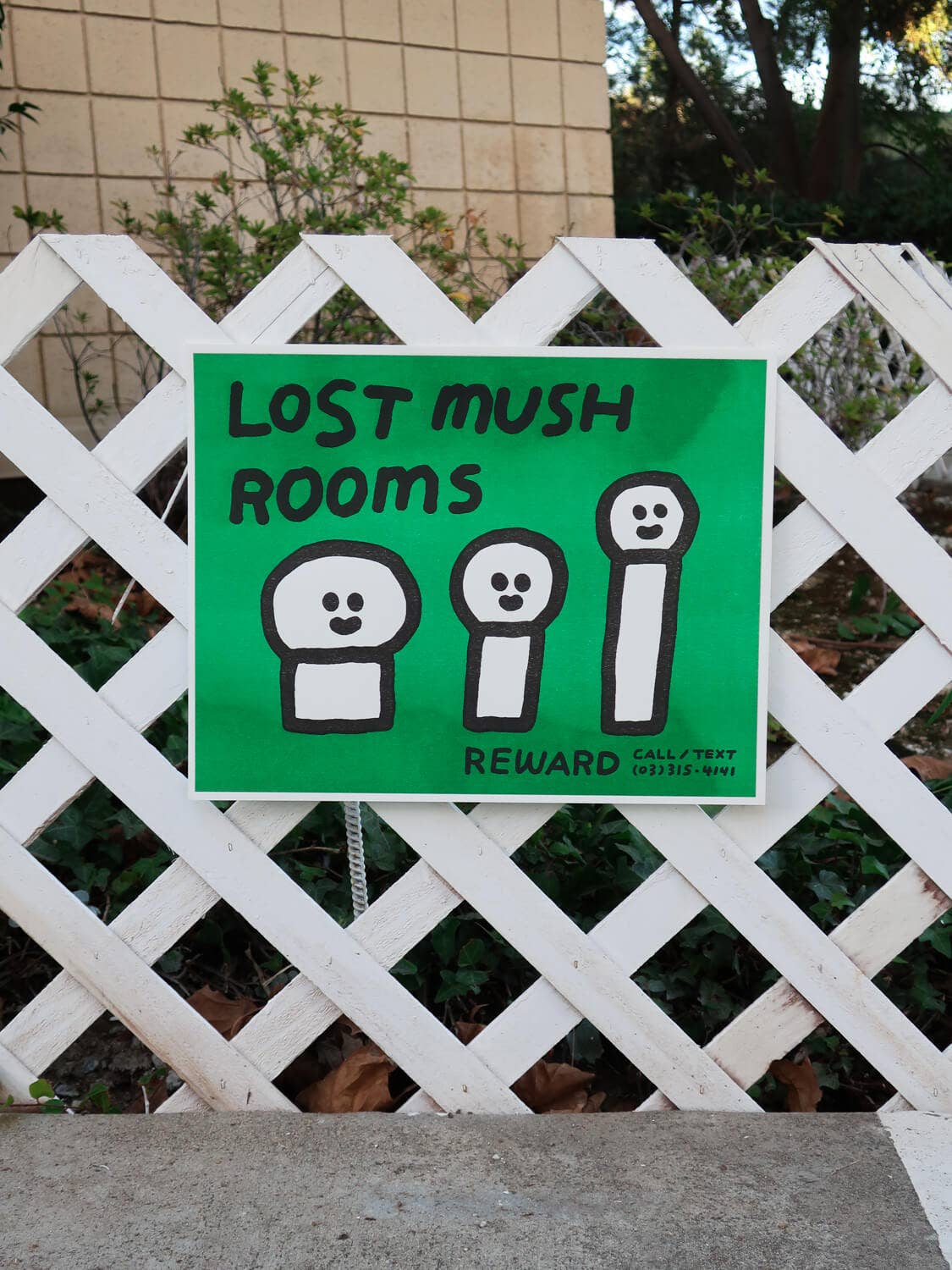 Three mushrooms have gone missing — have you seen them? Oitama takes the classic “lost pet” flyer and gives it a fungi twist with bold green risograph hue. Funny, weird, and kind of tender, it’s perfect for anyone who’s ever lost track of their little guys (or just loves mushrooms).
