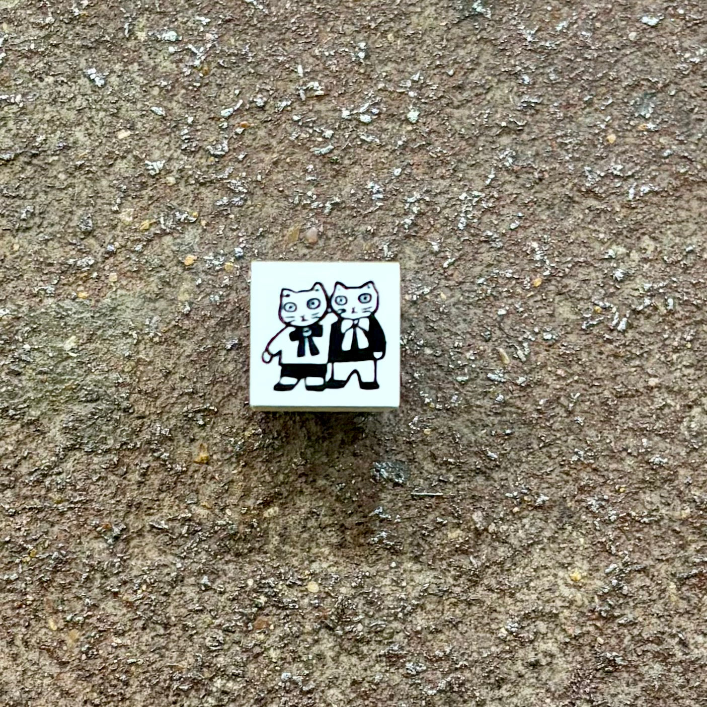 Japanese wood & rubber stamp featuring a pair of cute cat friends