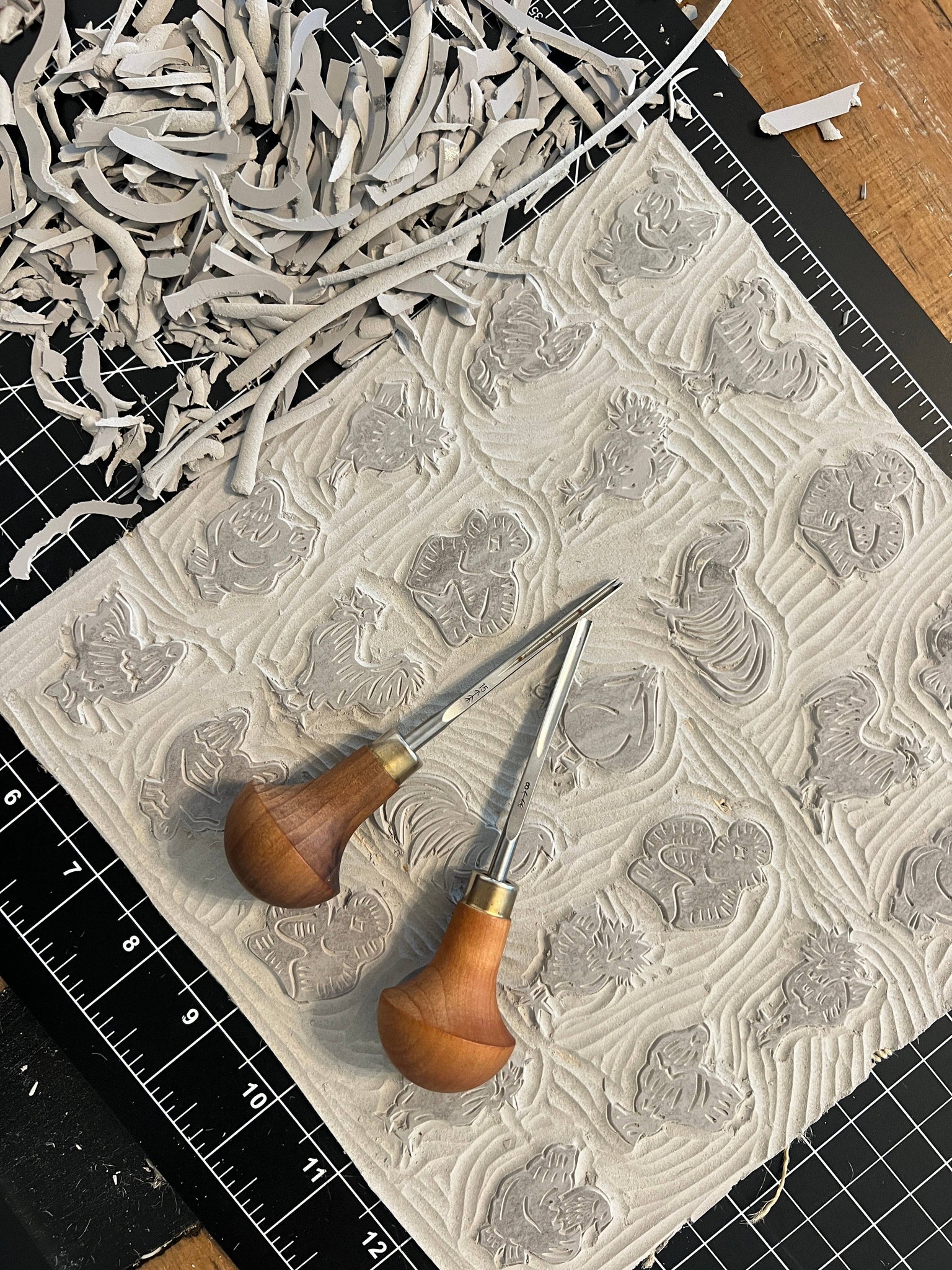 • Hand-carved linocut print on Warm White Stonehenge paper