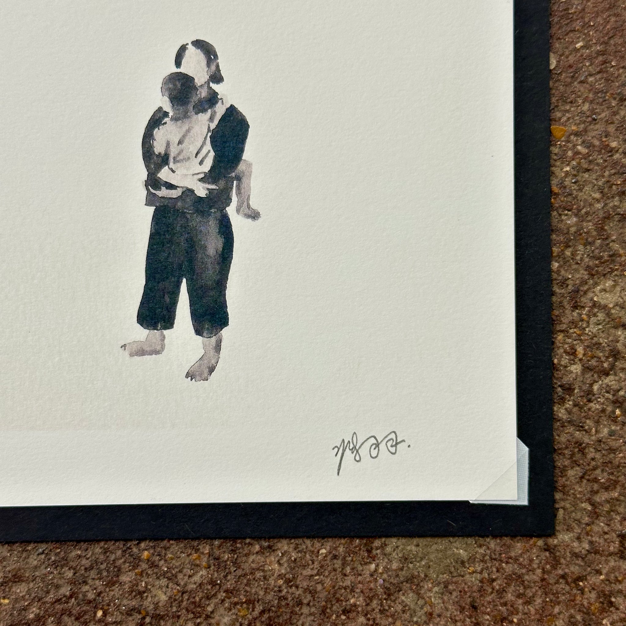 Rendered in graceful washes of black and gray, People of the Past captures the fleeting silhouettes of memory — figures half-remembered, like ghosts of gentler times. Hong Kong–based artist Yu Feng 馮羽 draws inspiration from Chiu Liang’s 《儷人行》, translating its poetic rhythm into visual form. Her monochrome brushwork feels both restrained and tender — a meditation on the passage of time and the quiet dignity of everyday people.