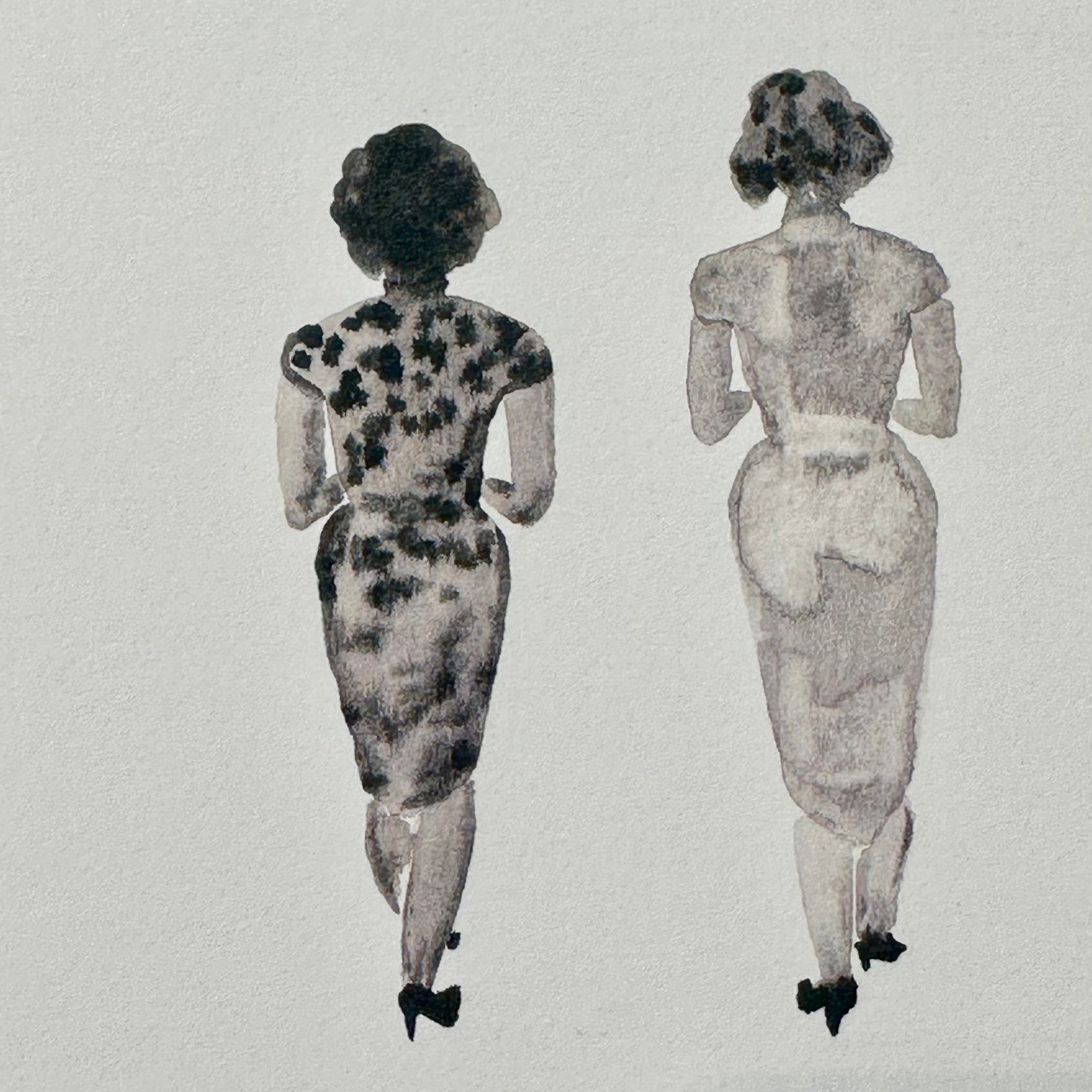 Each stroke carries a trace of nostalgia, echoing the stillness of photographs that have faded at the edges. Though the colors are gone, emotion remains — the warmth of shared moments, the subtle ache of distance, and the beauty of remembering those who came before us.